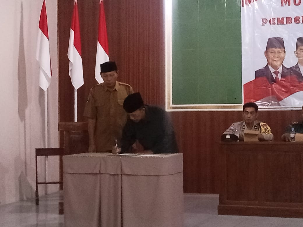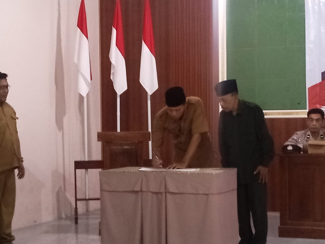 Musyawarah desa ditutup dengan penandatanganan berita acara pengesahan pembentukan Koperasi Merah Putih oleh Ketua BPD Roni Abdul Wahid dan Kepala Desa Siswo Pranoto.