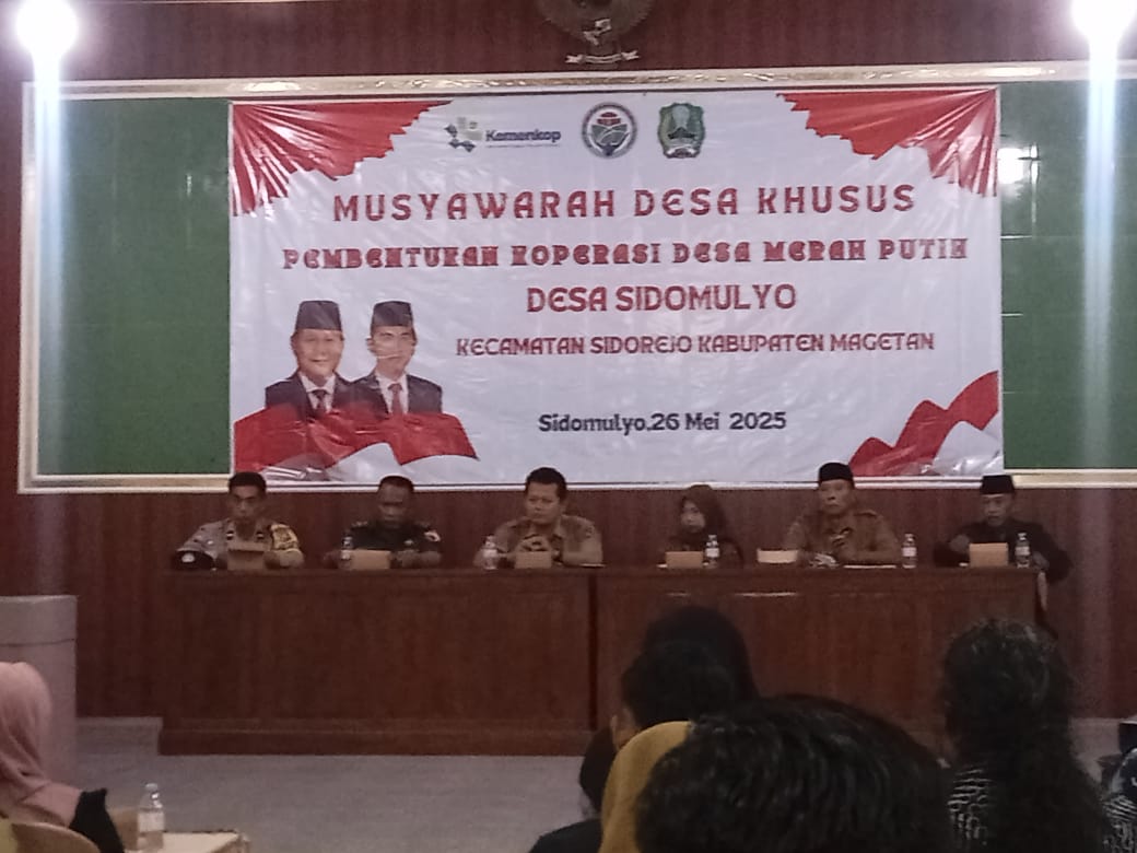 Magetan | Lintas Mataram – Pemerintah Desa Sidomulyo, Kecamatan Sidorejo, Kabupaten Magetan, menggelar Musyawarah Desa Khusus untuk membentuk struktur organisasi Koperasi Merah Putih Desa Sidomulyo pada Senin sore, 26 Mei 2025.