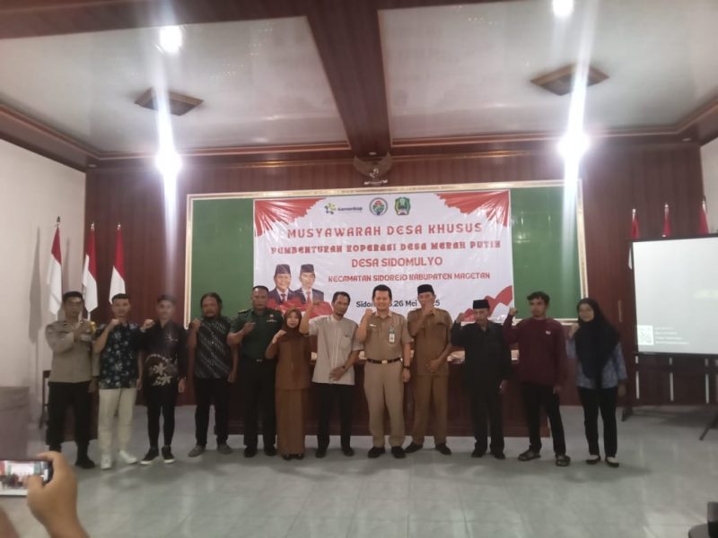 “Kegiatan seperti ini tidak hanya dilakukan di Desa Sidomulyo, melainkan juga serentak di seluruh Indonesia. Pembentukan koperasi ini diharapkan tetap terkoordinasi dengan baik, aman, dan sesuai regulasi,” ujar Camat Muldono Arianto.