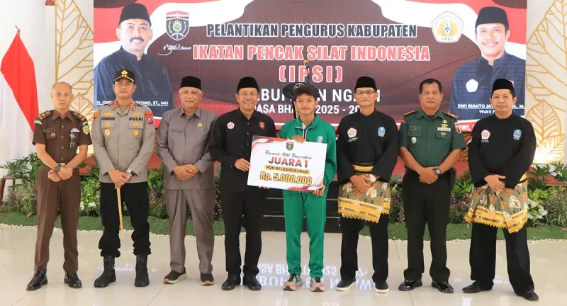 Dalam kesempatan tersebut, Dr. Dwi Rianto Jatmiko, M.H., M.Si. resmi dikukuhkan sebagai Ketua Umum IPSI Kabupaten Ngawi oleh Wakil Ketua I IPSI Jawa Timur. Kegiatan berlangsung khidmat dan dihadiri oleh Wakil Bupati Ngawi, jajaran Forkopimda, perwakilan IPSI Jawa Timur, serta para ketua perguruan pencak silat se-Kabupaten Ngawi.