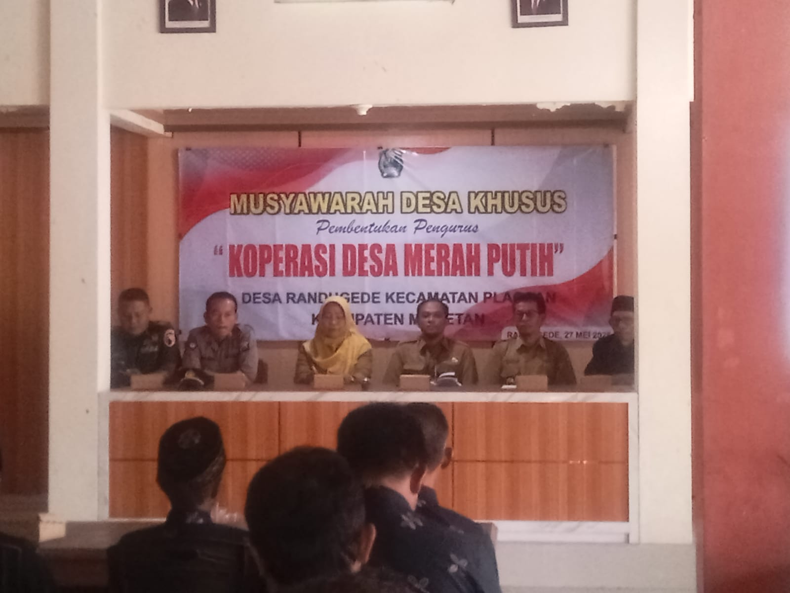 Magetan || LintasMataram.com – Dalam rangka menindaklanjuti surat edaran Kementerian Dalam Negeri dan implementasi Asta Cita Nawa Bakti Presiden, Pemerintah Desa Randu Gede menggelar Musyawarah Desa Khusus (Musdessus) untuk pelantikan kepengurusan Koperasi Merah Putih. Acara tersebut berlangsung di Aula Kantor Desa Randu Gede pada Selasa, 27 Mei 2025.