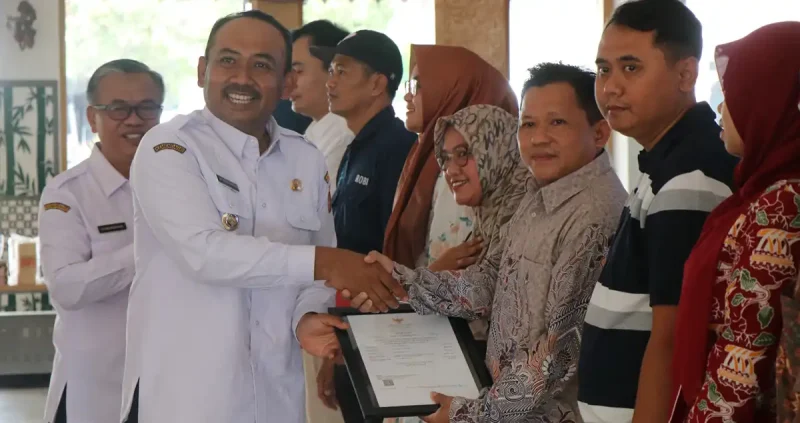 NGAWI, lintas – Pemerintah Kabupaten (Pemkab) Ngawi terus menunjukkan komitmennya dalam memperkuat pertumbuhan ekonomi daerah melalui kemudahan perizinan usaha dan pendampingan bagi pelaku Usaha Mikro, Kecil, dan Menengah (UMKM). Salah satu langkah nyata diwujudkan dengan penyerahan sertifikat legalitas usaha, yang meliputi sertifikasi halal dan Nomor Induk Berusaha (NIB), bertempat di Pendopo Wedya Graha, Rabu (29/10/2025).