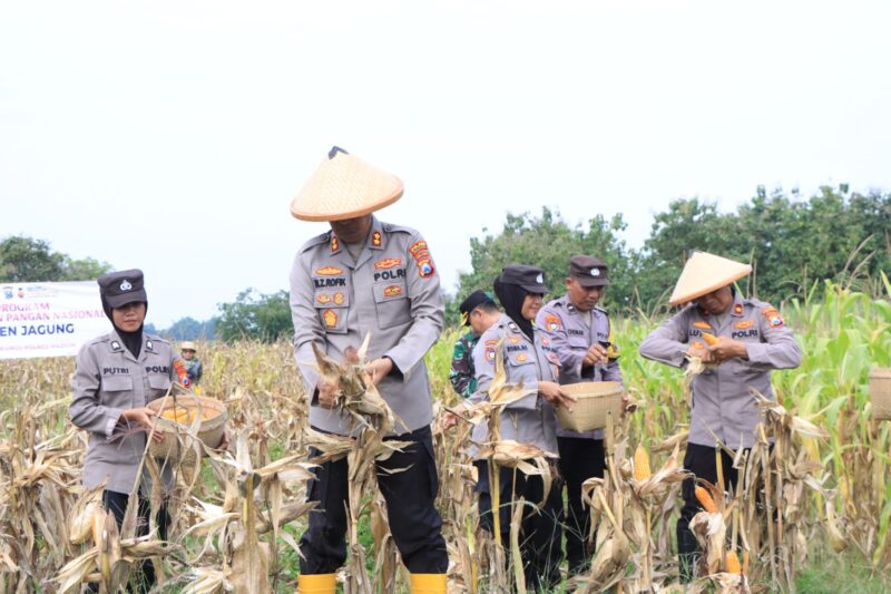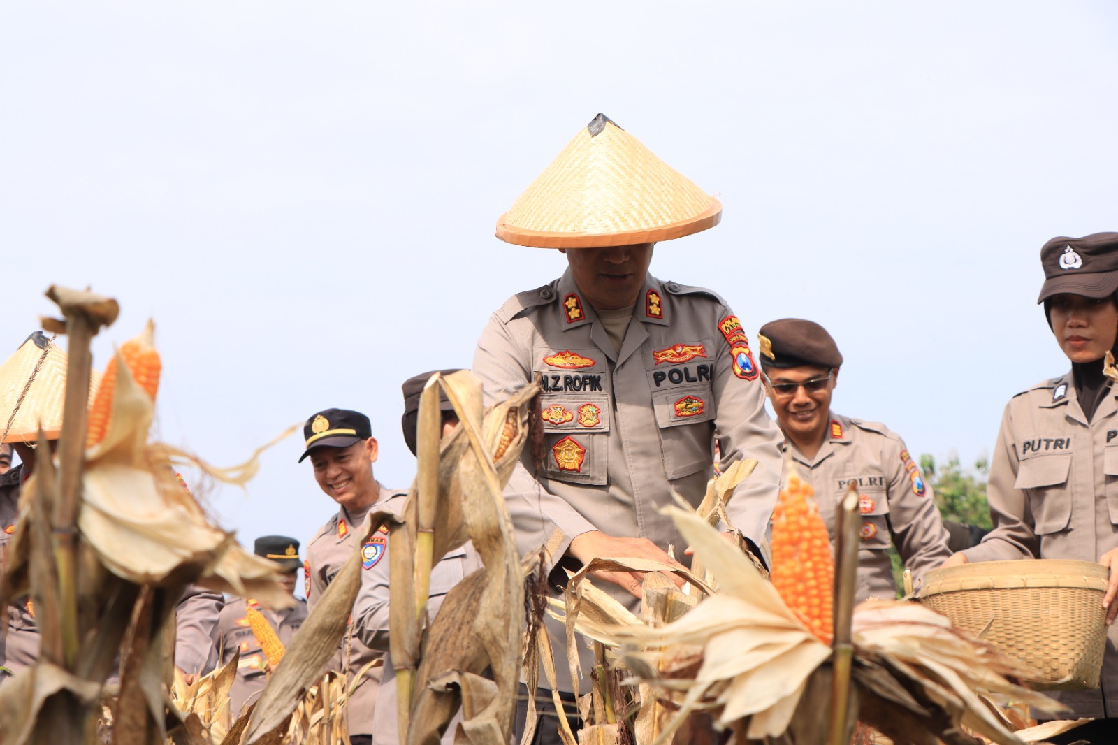 Panen jagung dilakukan secara simbolis oleh Kapolres bersama jajaran Forkopimcam sebagai bentuk komitmen Polres Madiun dalam mendukung swadaya dan swasembada pangan nasional.