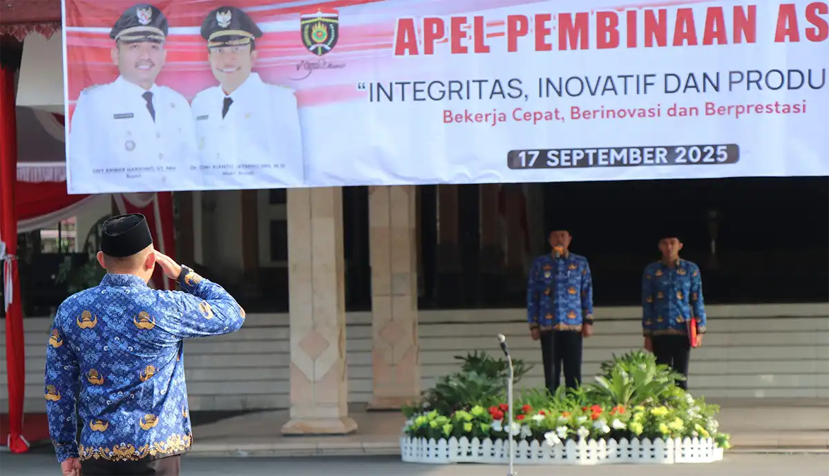 NGAWI, lintasM – Pemerintah Kabupaten (Pemkab) Ngawi terus berupaya meningkatkan kinerja aparatur sipil negara (ASN) melalui kegiatan Apel Pembinaan ASN yang digelar di Halaman Pendopo Wedya Graha, Rabu (17/9/2025). Pada kesempatan ini, Wakil Bupati Ngawi, Dwi Rianto Jatmiko, bertindak sebagai inspektur upacara.
